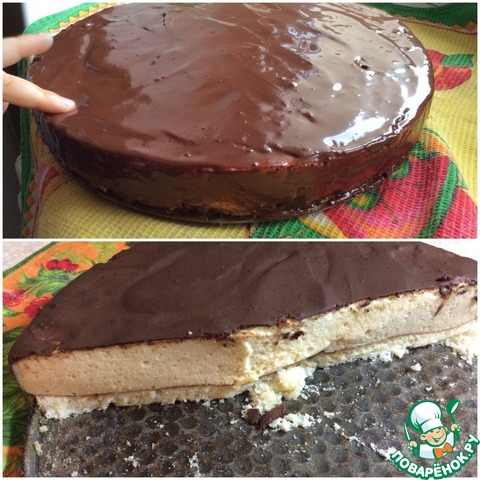 Наносим шоколадную глазурь на торт равномерным слоем. Ставим на небольшое время в холодильник, чтобы глазурь схватилась.