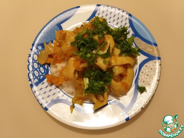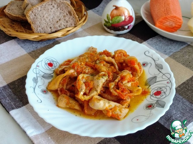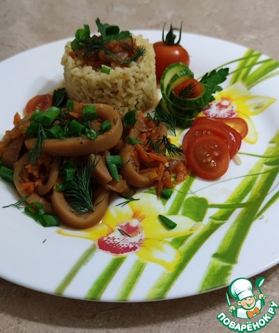 Этот рецепт Ирины Кутовой не давал мне покоя целый год. Уж очень противоречил способ приготовления общепринятому для морепродуктов. Это ведь не мясо и не рыба, а продукт деликатный. Всё обдумывала и прикидывала, что из этого может получиться... И трудов жаль, и продуктов. Решилась. Зря сомневалась-то, кальмары получились мягкие, ароматные, а овощи превратились во вкуснейший соус! Усилий минимум. Рекомендую!
