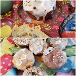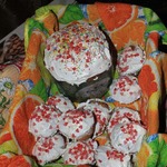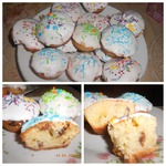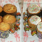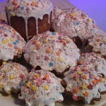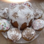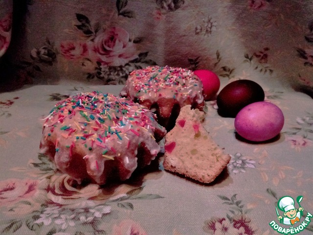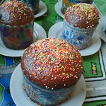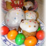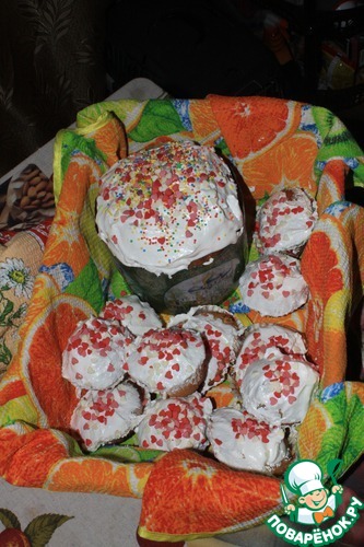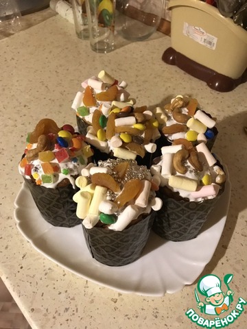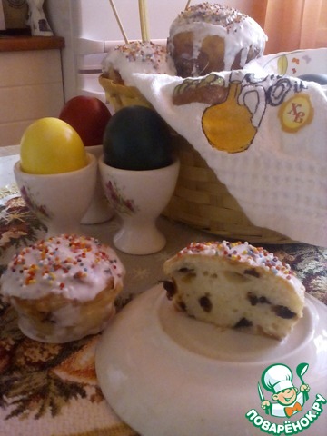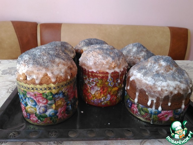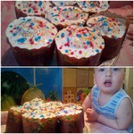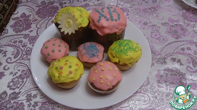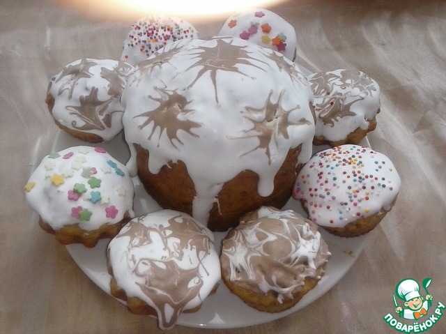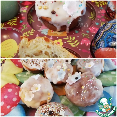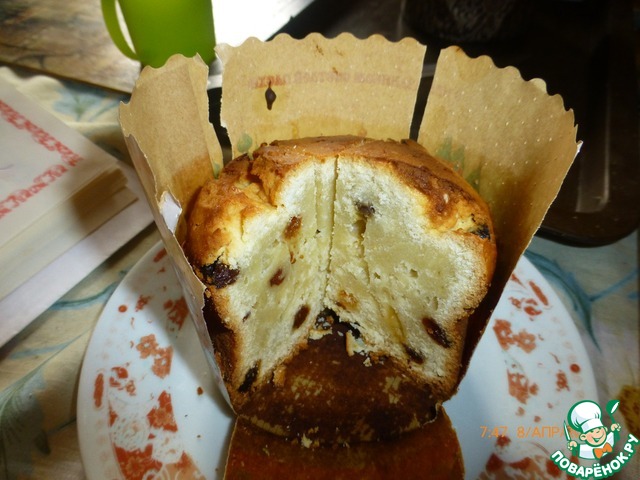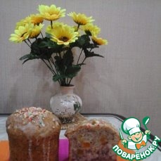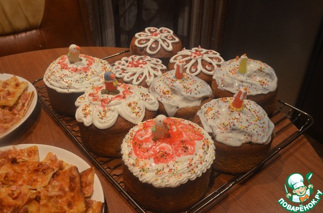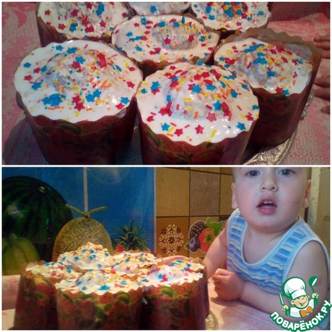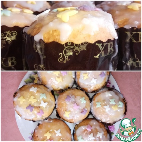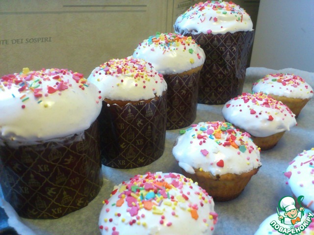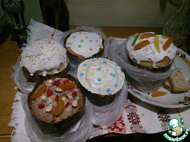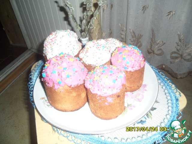 Для информации: из полной порции получилось 6 куличей в формах 8.5*10 см и 11 куличиков в средних порционных формочках для кексов (капсулы примерно 6*4 см)