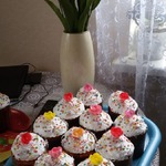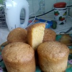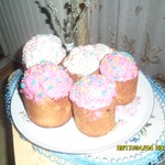 Получилось шесть небольших куличиков ,пекла в бумажных стаканах в аэрогриле.