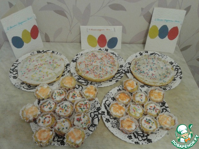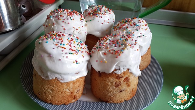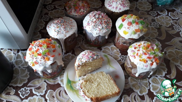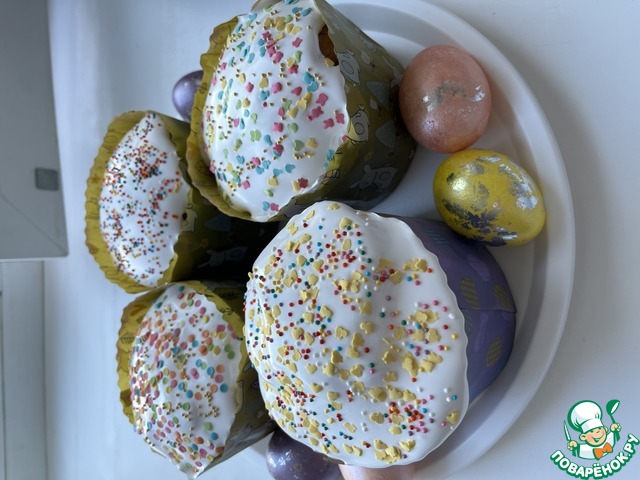 Примерный выход - 8 маленьких куличей и 2 больших. Все зависит от форм.