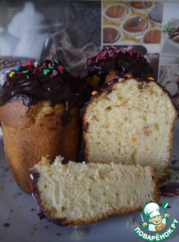 Вначале хотела ещё приготовить глазурь, но, как я уже сказала, силы меня покинули. Зато мой молодой человек при виде кулича так воодушевился, что кинулся готовить шоколадный пудинг, и я подумала, что если есть пудинг, то глазурь уже как-то и не очень нужна.