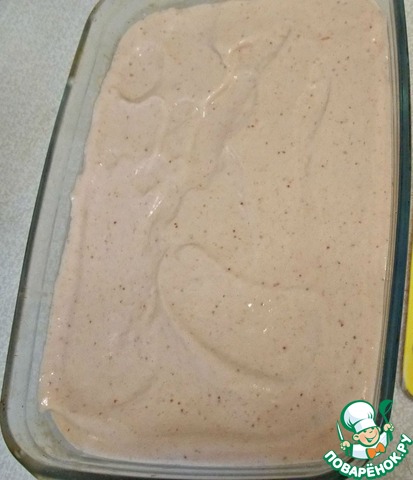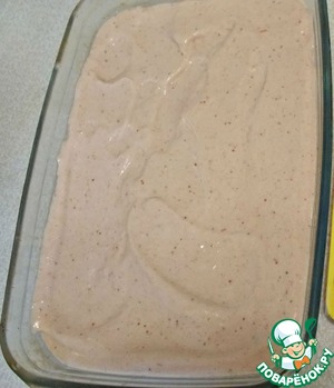 Поставить в холодильник на несколько часов, чтобы структура хорошо стала держать форму. Затем нарезать на кусочки и подать к столу.