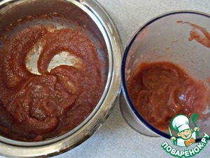 Снять с огня и сделать пюре при помощи блендора. Тоже самое сделать и с ягодами клубники.