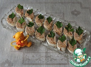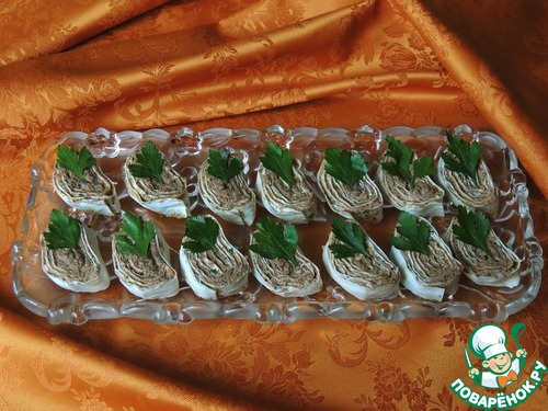 При подаче рулетики украсить листочками петрушки. Приятного аппетита!