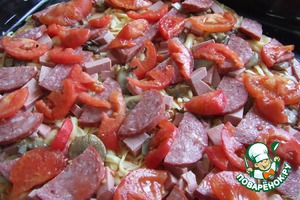 Сверху колбасу(вареную).