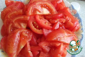 С помидор снять кожицу и нарезать.