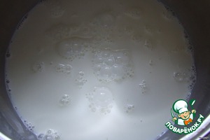 В емкость налить молоко. -