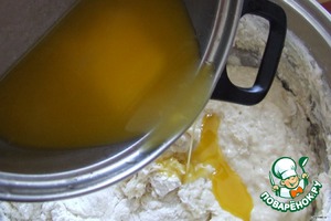 Маргарин растопить. Замесить тесто и в самом конце добавить маргарин и растительное масло.