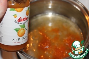 Смешать половину шампанского и абрикосовый конфитюр и вскипятить