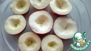 • Яблоки разрезать на половинки и очистить от сердцевины.