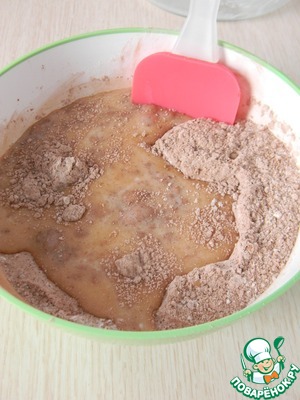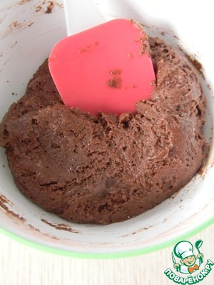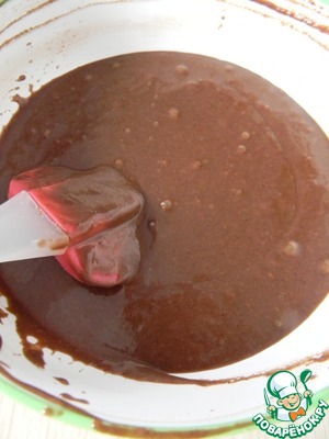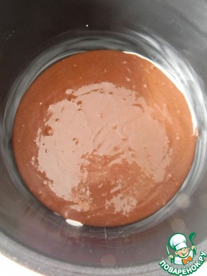 Сверху вылить шоколадное тесто, оно отлично распределяется.