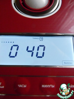 Включить мультиварку, режим "Выпечка", 40 минут. Данное время подходит для мультиварке VITEK VT-4206 R, выпекая в другой, может понадобиться больше времени, можно открыть и проверить готовность палочкой.