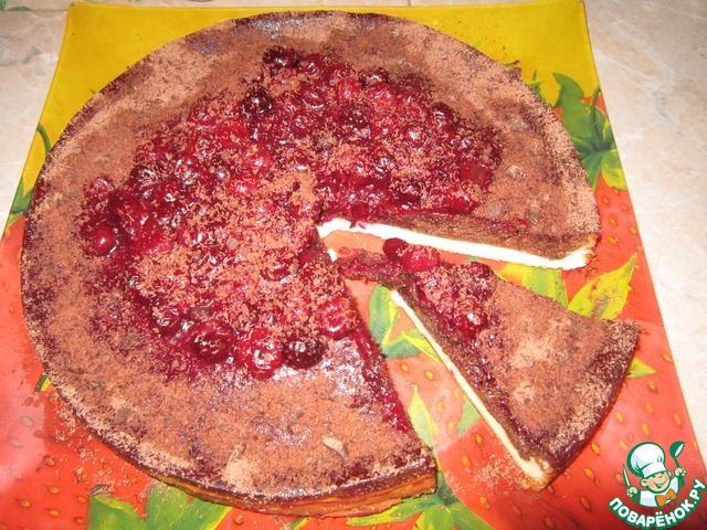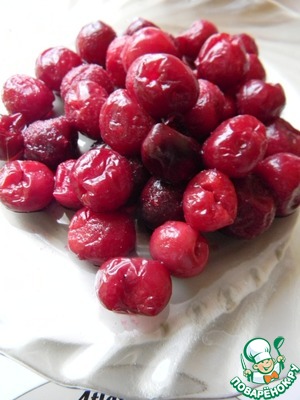 Вишню я оставила в середине, а получившемся соусом промазала бока.