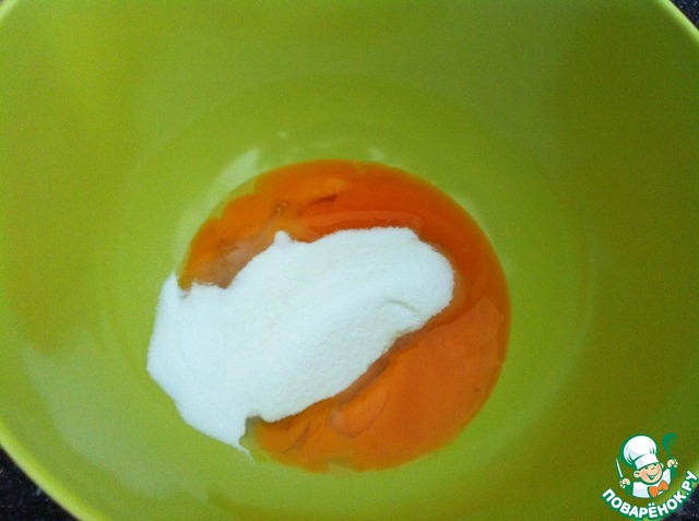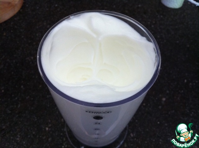 Белки 4 яиц взбить в крепкую пену и оставить в стороне (делаю это первым шагом, чтобы не мыть венчики после желтков :)