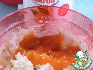 Затем добавляем конфитюр и хорошенько перемешиваем.