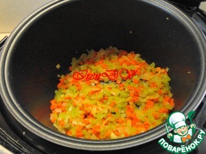 Сначала обжариваем лук и морковь, потом добавляем сельдерей и чеснок.