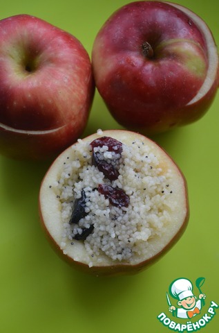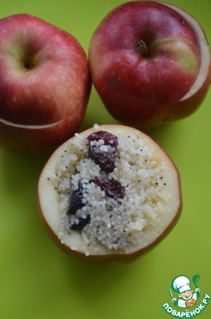 Яблоки тщательно вымыть, срезать верхушки, вынуть сердцевину и часть мякоти.