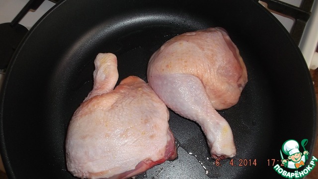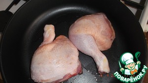 Сковороду нагреть, налить масло и положить окорочка.