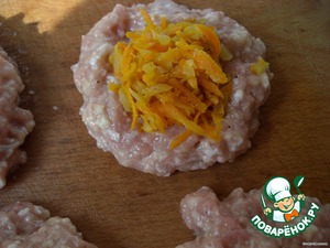 Фарш разделать на лепешки, во внутрь положить овощной фарш, защипать, запанировать в сухарях и ожарить до готовности.