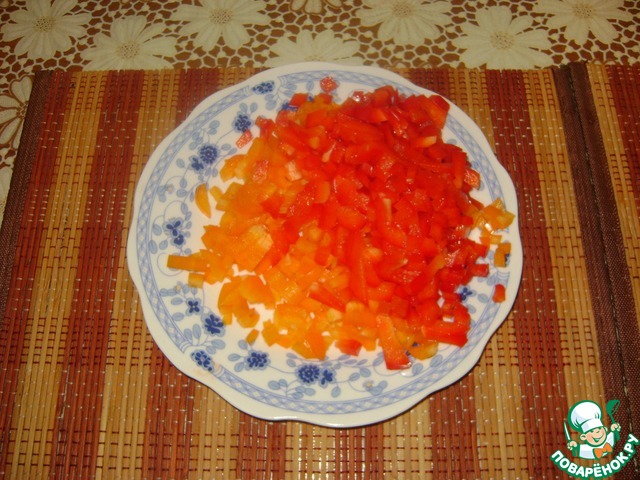 -перец болгарский оранжевый и красный. Оранжевый был маленький, использовала одну штуку, красный-большой, использовала половину.