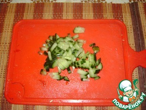 Грибы пережарить с половиной репчатого лука. Отдельно пережарить вторую половину репчатого лука и смешать с курицей. Смешать огурцы с зеленью, смешать перец с зеленью. Посолить, поперчить по вкусу. В мисочке смешать творожный сыр со сметаной или майонезом. Тут остановлюсь поподробнее. В идеале, я думаю, лучше взять побольше сыра и совсем немного майонеза. Масса по консистенции должна получиться такой, что бы ею можно было заправить начинки, как майонезом, и перемешать. Каждую начинку заправить и перемешать. Посолить, поперчить, если нужно. -