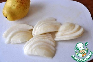 Груши моем, чистим от кожуры и семян, нарезаем тонкими ломтиками.