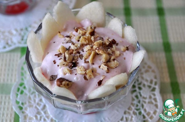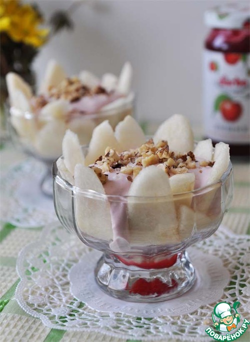 Идея этого рецепта взята из книжки "Десерты из фруктов и ягод", присланной мне в подарок Оленькой - orudakva. Очень просто, нежно, вкусно и малокалорийно.
