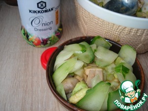 Заправляем по вкусу салатным соусом с луком от Kikkoman, перемешиваем.