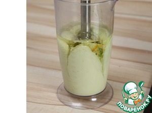 На дно опустить блендер и начинать взбивать на максимальной скорости, понемногу поднимаясь вверх.