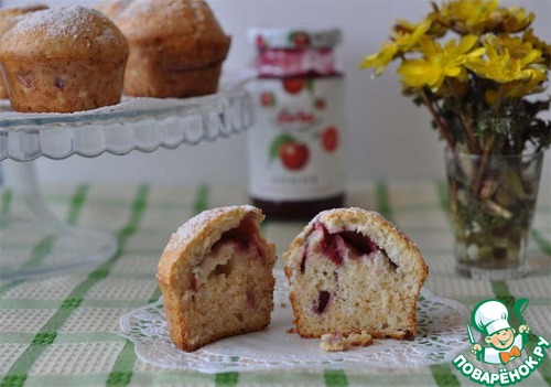И сверху заливаем конфитюр тестом. У меня получилось 12 кексиков.