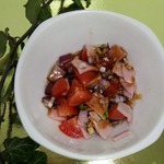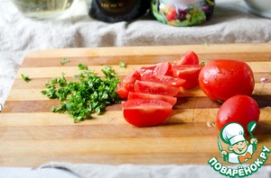 Помидоры черри нарезать четвертинками. Петрушку мелко нарубить.