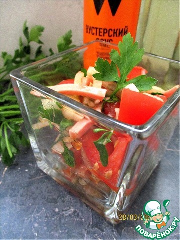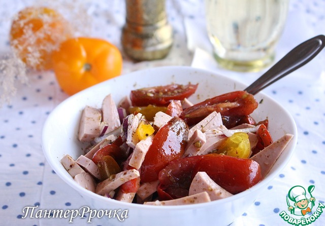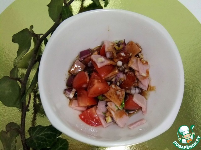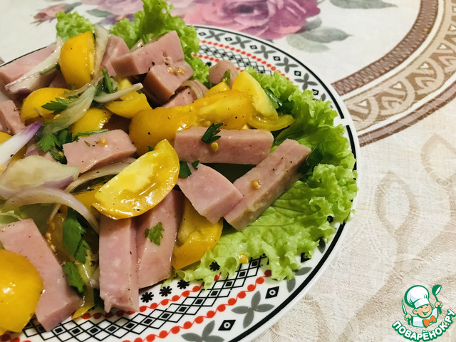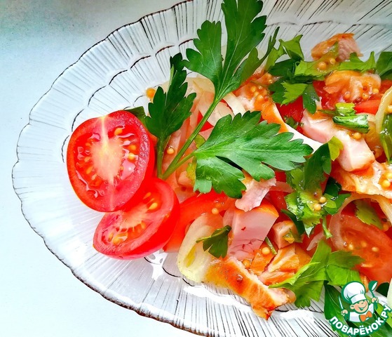 Рецепт «Салат с ветчиной, помидорами и луком»: