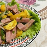 Салат с ветчиной, помидорами и луком