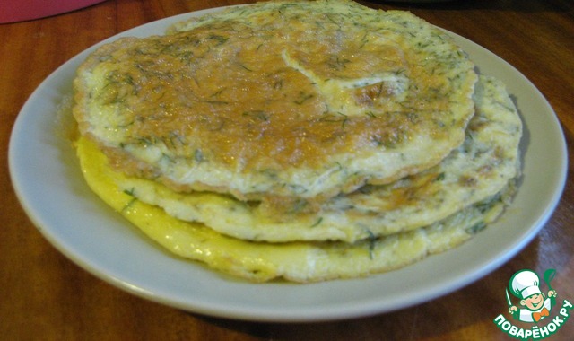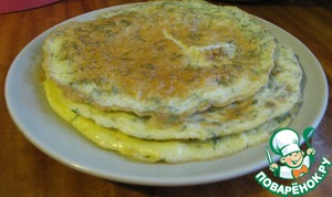На омлет начинку, потом опять омлет, начинка, еще раз омлет и начинка.