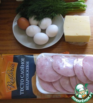 - Тесто слоеное (В наличие было только 250 г, хватило, но коржи получились тонкие) — 500 г