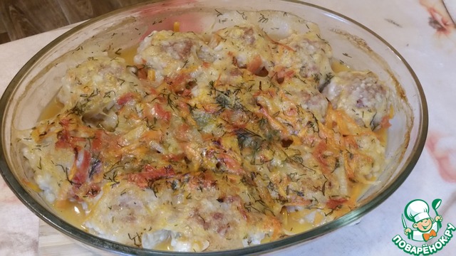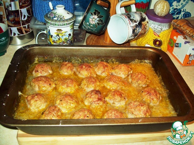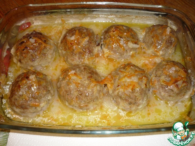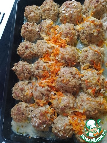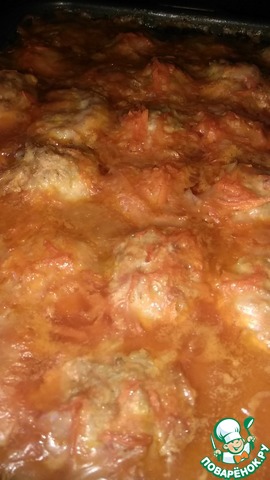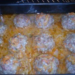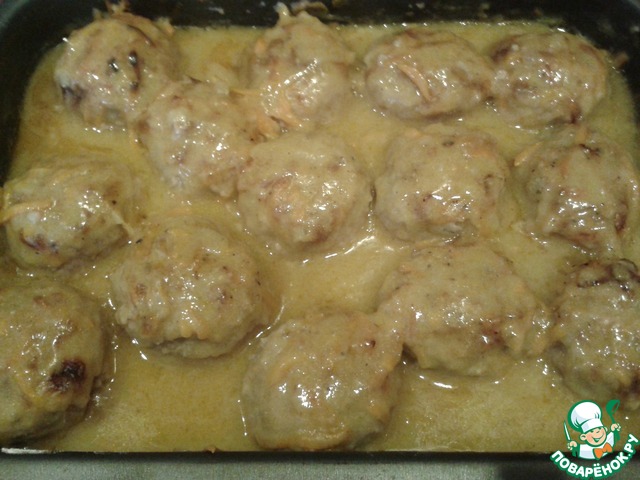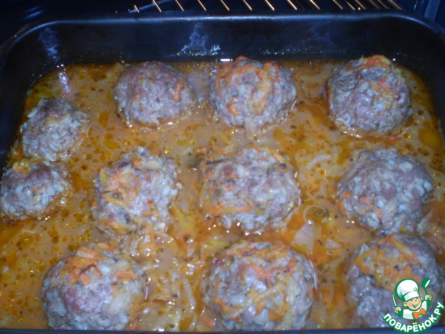 Залить горячей подливой тефтели. Она должна покрыть их почти полностью, так как в процессе запекания половина выкипит.