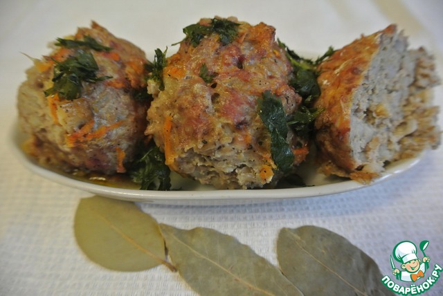 Смешать фарш, остывшую крупу и лук. Посолить и поперчить по вкусу. -