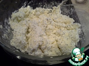 Смешиваем творог, сметану, сахар, муку (2ст. л.) и мак.