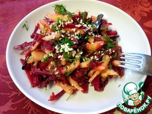 Я очень люблю салаты из сырой свеклы! Готовлю разные их вариации, этот особенно часто появляется на моем столе! Вкусно, ароматно, пикантно и полезно! Угощайтесь!