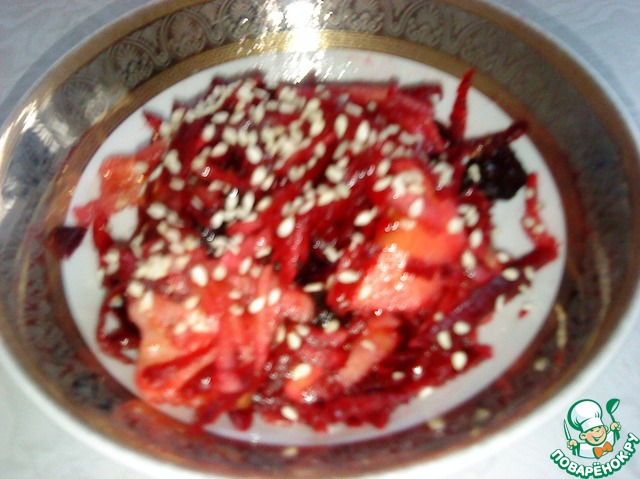 Перемешиваем наш салат с заправкой. Посыпаем кунжутом.