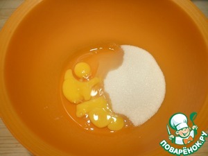 В миску насыпаю сахарный песок, добавляю яйца.