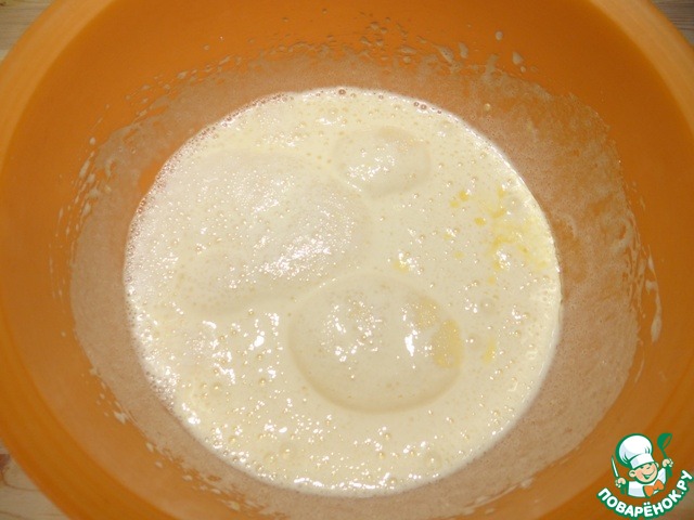 Когда добавила в тесто, оно очень вспенилось и увеличилось в объеме, даже немного вытекло из миски.