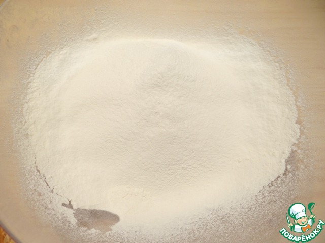Муку просеиваю с разрыхлителем и ванилином.