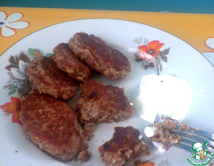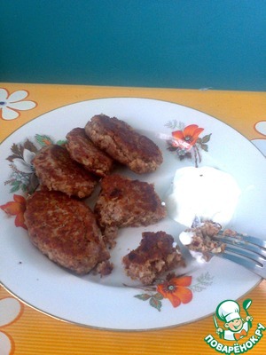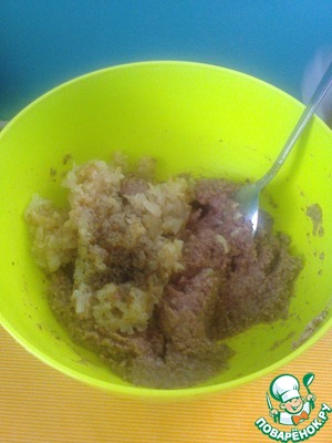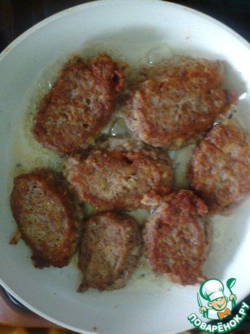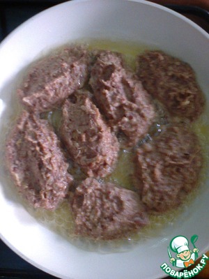 Перемешанный фарш обжариваем, выкладывая столовыми ложками.