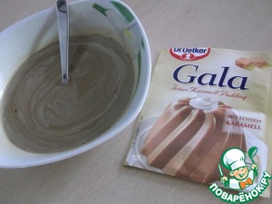 Сухой пудинг перемешиваем с 2 ст. л. сахара и 100 мл холодного молока