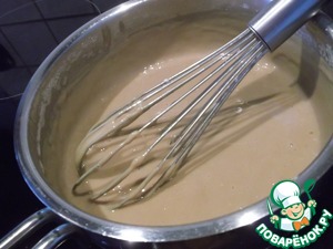 В карамелизированный сахар вливаем 300 г сливок, немного проварим.