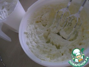 Творожно- сливочный крем выкладываем на карамельный пудинг.