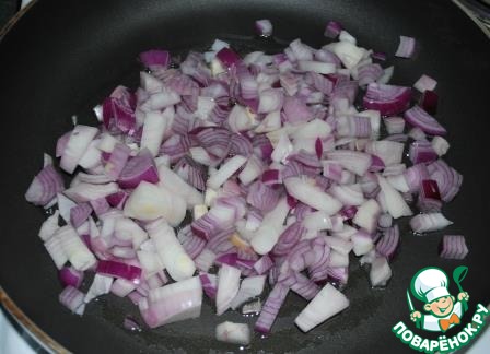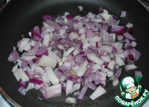 4. Нагреть сковородку, обжарить лук до золотистого цвета.