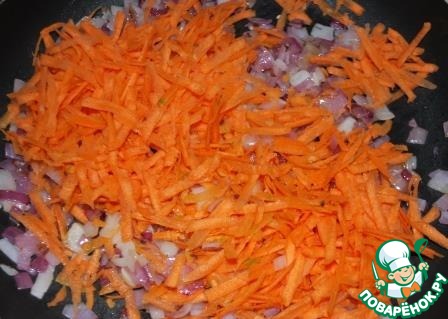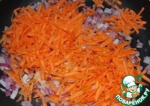 5. К нему морковку. Продолжать обжаривать.